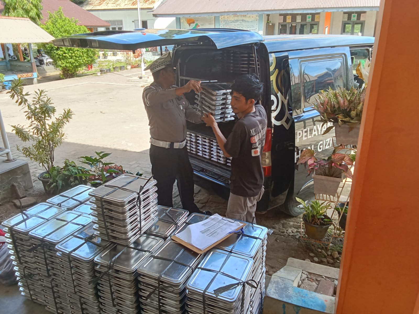 “Kami pastikan distribusi makanan bergizi ini berjalan aman, tertib, dan lancar, agar benar-benar sampai kepada anak-anak penerima manfaat yang telah terdata,” ujar Iptu Muhammad Hisam.